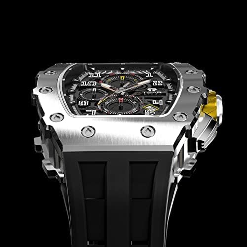 ⌚ Unique Design: The classic tonneau shape and the exterior shape of the exposed screws around the dial, together with the unique and complex design of the skeletonized dial, the crown design derived from the wheels and tire treads of a racing car, make this watch look luxurious and cool. The ergonomic double bridge design provides an extremely comfortable wearing experience, and the advanced innovative technology make this watch show the "Haute Couture" style. ⌚ Japanese Movement&Sapphire Crystal: This multifunctional chronograph watch with Imported Japanese movement, which ensures accuracy and stability. The case is made of 316L stainless steel with 202 steps processes, with high quality sapphire crystal, which has good wear resistance and visual impact. The silicone strap is soft and comfortable, and can last longer than you can imagine under normal use. ⌚ Waterproof&Luminous: TSAR BOMBA men's watch water resistance up to 50 meters/5 ATM, can easily withstand sweat, rain and splashing water, so you don't have to worry about daily water resistance. A-level super luminous function, let you read the time clearly even at night. (It can glow for 3-4 hours after absorbing enough light energy). ⌚ Ideal Gift: TSAR BOMBA watches are unique and sporty, with quality materials and excellent watchmaking craftsmanship, show your luxury temperament! Packaged in an exquisite box, this luxury watch is the ideal gift for yourself, your loved ones, friends and family for Birthday, Father's Day, Thanksgiving, etc. ⌚ CUSTOMER SATISFACTION: We provides an 90-day return policy and a 2-year after sales servive. We remain committed to providing a range of classic high quality designer men's watches and a high standard of customer service. If you have any questions about our watch for men, please contact us first and we will provide you with a satisfactory solution within 24 hours.         #1,769,543 in Clothing, Shoes & Jewelry ( )   #10,011 in