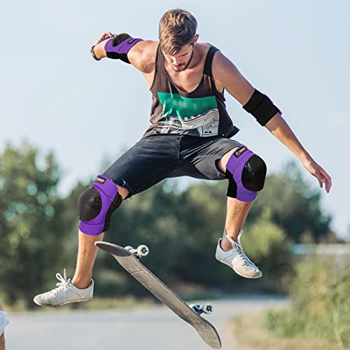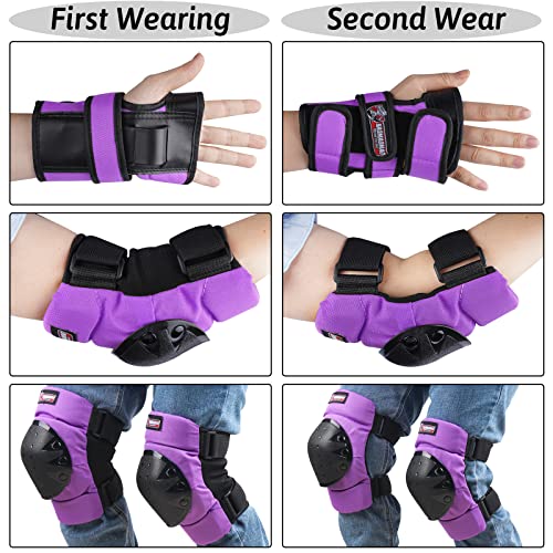 ? SKATEBOARDS SPORTS PROTECTIVE GEAR - Adult/Kids Youth knee pads elbow pads wrist guards are designed sports protection ,especially for ice and roller cycling skating,skateboard,hoverboard,biking,ATV,snowboarding,BMX,football and other outdoor sports.The tough plastic bumper and cushion pads of the knees elbow wrist pads are effectively impact resistance, Skate pad provide enough protection for a high impact outdoor sport.    Knee and elbow pads    ? PROFESSIONAL and COMFORTABIE MATERIAL - Tough plastic pumper made of anti-scratch high-hardness PVC shell,The interior of adult cushion pads is made up of EVA cotton and polyester cloth, Youth knee pads which is not only shockproof, but also very soft keeps dry and fresh and reduces sweating during hours of skating,snowboarding,skiing.scooter,cycling and etc.    ? ADJUSTABLE ELASTIC BANDS - The knee pads elbow pads and wrist guard are come with elastic straps which are adjustable for a comfortable fit on your body ,Ensure free movement during exercise, The comfortable size could adult/kids youth to enjoy the exercise experience freely.    ? 3 IN 1 ADULT/CHILD ROLLER SKATING GEAR SET - 2pcs knee pads, 2pcs elbow pads,2pcs wrist guards, Use size Size Suggest: S suggest for 3-6 year old, M suggest for 7-14 ,L suggest for 15-18Youth,XL suggest for Aldult/Youth It can adjust size and tighten freely. Suitable for different height and weight(Please check our size chart in the detail picture)    ☀ BEST GIFT CHOICE - Haomaomao adult/kids youth knee pads elbow pads wrist guards protective gear set is the good choice as the gift for children's Day, Birthday, Christmas, etc. A variety of sizes (S/M/L/XL) and colors (black / purple / blue / yellow / red / pink) to choose from. Suitable for men and women skateboard accessories.    ♥The correct way to use the knee pads:Our knee pads are designed to be worn in two different ways to suit different body types. The first is a wearable way, suitable for thin or summer use when wearing short sleeves and shorts, where the knee pads can be worn directly on the legs and arms. The other way is the Velcro fastening, which is suitable for fat people or people wearing long sleeves and pants, where the knee pads are attached to the knees and elbows and then fixed with a Velcro fastening           #15,456 in Sports & Outdoors ( )   #27 in