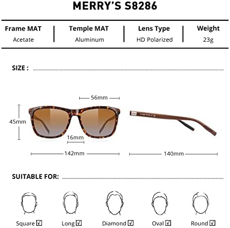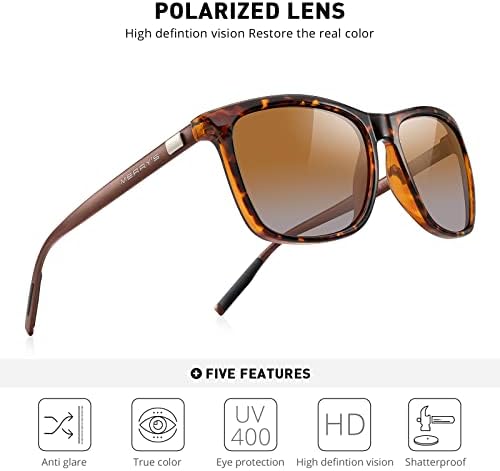 POLARIZED LENS - Polarized sunglasses reduce glare reflected off of roads, bodies of water, snow, and other horizontal surfaces. Restore true color, eliminate reflected light and scattered light and protect eyes perfectly. Polarized sunglasses cut glare and haze so your eyes are more comfortable and you can see better. STYLE - New brand design,it is suitable for any face, show your unique and high-end taste. SUITABLE - The perfect choice for taking selfies,shopping,houseboat,driving,running,fishing,climbing,trekking and business or other outdoor activities enthusiasts. SIZE - Lens Height:45MM(1.77Inches)--Lens Width:56MM(2.20Inches)--Arm:140MM(5.51Inches)--Bridge:16MM(0.63Inches)--Frame Length:142MM(5.59Inches). GIFT IDEAS PACKAGE - Sunglasses*1, Leather glasses case*1, Glasses kit*1(including microfiber glasses cleaning cloth and instruction book), Paper Box*1. It is also a gift packaged ready, making it a wonderful yet practical gift idea for friends and family!         #1,562 in Clothing, Shoes & Jewelry ( )   #10 in