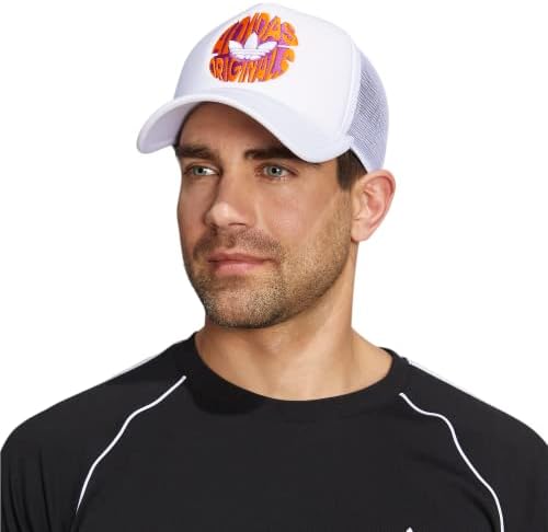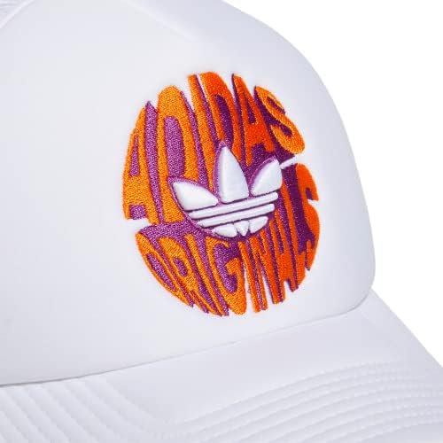 adidas Originals Mixed Graphics Foam Front High Crown Snapback Trucker Hat, White/Bright Orange/Flash Pink, One Size