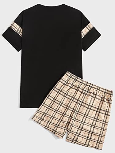 Mens 2 piece outfits short sleeve tops drawstring short pants sets Crew neck t-shirt, with contrast pattern at both sleeves and front, side pocket to store your essentials, the elastic waistband of the plaid shorts fits comfortably Stretch, lightweight fabric, two tone detail, perfect with slip-on or sneakers to create a fashionable leisure style Suitable for any occasions, such as street, dating, party, outing, vacation, weekend, beach and casual daily wear Please refer to the Item Description below for Size Details.         #166,924 in Clothing, Shoes & Jewelry ( )   #236 in