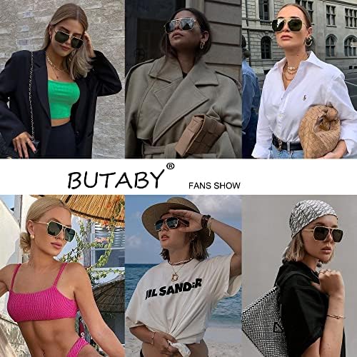 VINTAGE DESIGN - The fashion sunglasses features a flat top and double nose bridge design, not only is the oversized and square design makes slim frame looks very delicately, but also the aviator shape makes the overall look of the sunglasses more retro. With the super classic aviator shaped frame and square lenses, take a sense of high retro fashion on any occasion. HIGH QUALITY - The retro oversized aviator sunglasses are made of lightweight metal frame, thick but slim, not easily deformed, long wear does not press nose give you a unique and comfortable wearing experience. UV400 TAC POLARIZED LENSES - High definition UV400 polarized lenses effectively filters & blocks glares.Keep your eyes healthy and gives you a natural & clear vision, durable & shatterproof. SUITABLE - Perfect choice for outdoor activities such as walking, driving, shopping, travelling, taking photos, and is suitable as high fashion accessory and daily wear all year round. BUTABY's Motto - At BUTABY,our motto is that no need to pay a fortune to get a perfect pair of sunglasses.We are glad to have achieved balance between Quality, Fashion and Price. #80,615 in Clothing, Shoes & Jewelry ( ) #393 in #802 in