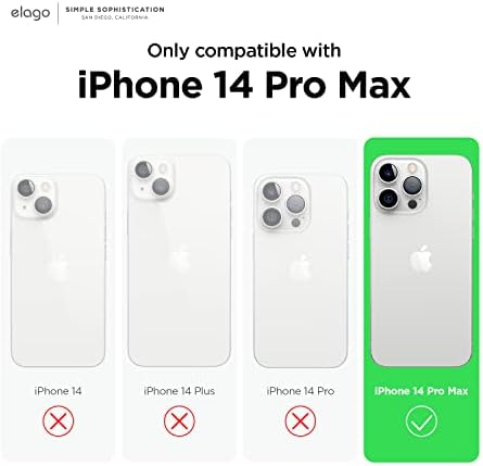 UNLIKE OTHER GENERIC CASES THAT are mass produced, all of our cases are designed IN HOUSE FROM SCRATCH. From a concept, all the way to a finished product, every aspect of creating a product is done in-house to ensure that you get a product that WILL FIT PERFECTLY, HELP PROTECT FROM EVERYDAY USE, AND LOOKS GREAT – SAVING YOU TIME AND MONEY!    ELAGO's SILICONE CASES HAVE been TOP SELLERS on Amazon for the past THREE YEARS FOR A REASON! Each model our design gets a little bit better, giving you MORE AND MORE EACH YEAR!    LIQUID SILICONE WAS USED TO make this incredible case! The case ADDS GREAT GRIP AND PROTECTION to your phone while adding a SPLASH OF COLOR! Don't sacrifice any aspects of what makes a case great when choosing elago. NOTE: DUE TO THE GRIPPINESS OF THE CASE, LINT AND OTHER SMALL PARTICLES CAN ATTACH. SIMPLY WIPE YOUR CASE WITH A WET CLOTH OR PAPER TO CLEAN IT UP!    FULL COVERAGE COMPATIBLE WITH your iPhone 14 Pro Max! The case covers all sides of the phone - including the bottom and buttons. RAISED LIP helps protect the screen and camera against scratches from direct surface contact. WIRELESS CHARGING COMPATIBLE!    elago is a DESIGN COMPANY FIRST AND FOREMOST. Our motto is SIMPLE SOPHISTICATION because we create products that are USEFUL AND AWESOME! WE ALWAYS CREATE products that WE OURSELVES USE, so we know YOU WILL LOVE IT!