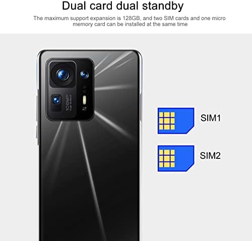 Front and Rear Camera: Front camera 48MP, f/2.0 aperture, fixed focal length, Rear camera 72MP, color, f/1.8 aperture, autofocus.    7.3 Inch Screen: The large 7.3 inch screen allows you to experience a wider field of view, showing more content in games and videos.    Storage Memory: The maximum support expansion is 128GB, and two SIM cards and one micro memory card can be installed at the same time.    Good Performance: Face recognition function, with WIFI, BT, FM, GPS, Type C charging port, 3.5mm standard headphone Jack.    High Definition Camera: MIX4 smartphone has high definition camera, vivid colors, every photo is as beautiful as wallpaper.