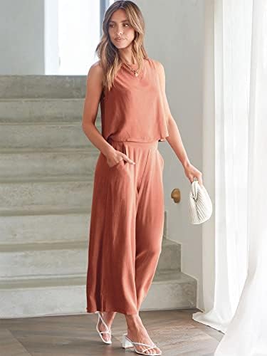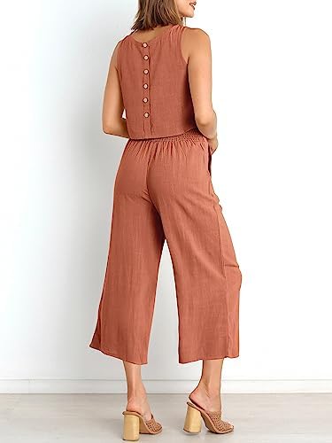 Size - Choose the perfect fit from S=US(2-4), M=US(6-8), L=US(10-12), XL=US(14-16),XXL=US(18-20). For detailed size information, check our rich description Features - This 2 piece outfit features a sleeveless round neck crop top, wide-leg cropped pants, button back, high waist, and a wide waistband for added comfort. Occasion - From summer parties to casual tourism, this trendy two-piece outfit is perfect for every occasion. Make it a must-have for your daily wear, weekend family parties, and vacations. Stylish Outfit Set - Embrace effortless style with this set that combines perfect length and high-quality lightweight fabrics for a comfortable experience all day long. With a cozy elastic waist, it's perfect for any occasion, from everyday wear to lounging or even beach vacations and workouts! Washing - Dry clean recommended to avoid shrunk.