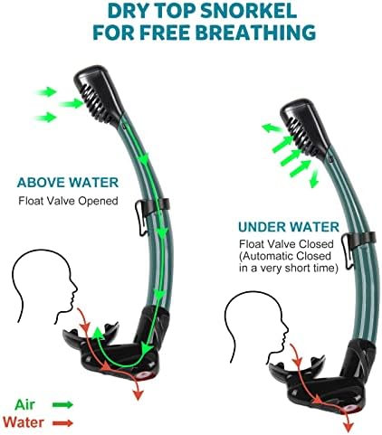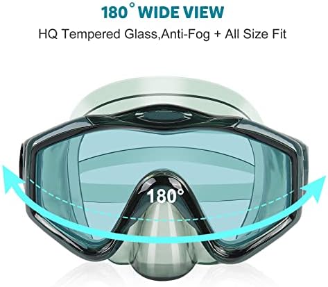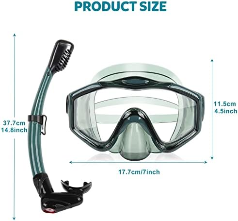 【Wide View Mask】 Ready to explore the underwater world? Our prescription snorkel mask is the perfect fit for any snorkeling enthusiast who never wants to miss out on the beauty of marine life and new landscapes. With its 180-degree vision and tempered glass that prevents fogging, you can witness the underwater world without any hindrance. This mask also features anti-leak technology, making it perfect for both photography and exploration. So, get ready for a new adventure and dive in!    【Easy-Breath Dry Top Snorkel】 If you're into exploring marine life, you need to get your hands on a full dry top snorkel. It's got a special tube design that lets you keep your head underwater while breathing air from the surface. The tube has a valve that automatically opens when it's above the water and closes as it goes under. Plus, it's made in one piece for better air flow and easier breathing. Perfect for both beginners and experienced divers.    【Comfortable Fit and Leak Proof Skirt】: Experience the ultimate snorkeling adventure with KUYOU Snorkeling Gear! Our durable snorkeling mask features a soft ergonomic skirt that fits your face contours perfectly, ensuring maximum comfort while underwater. The adjustable silicone strap lets you customize the fit to suit all face shapes. You can trust our snorkeling gear to prioritize your safety while providing the perfect fit for all who love snorkeling.    【Easy to Use and Details】 This snorkeling gear is an easy-to-maintain set with a simple design. The snorkel mask weighs 0.47lbs, and the snorkel tube is 0.29lbs. The mask is 17.7cm/7 inches long and 11.5cm/4.5 inches wide, while the snorkel tube is 37.7cm/14.8 inches long. This gear is great for casual snorkeling, family swim trips, and exploring shoals.    【Ideal for Snorkelers】: This Snorkeling Gear is perfect for both beginners and advanced snorkelers. It offers a comfortable and safe snorkeling experience and is suitable for all ages. Plus, the mask and snorkel tube come in recyclable, sturdy plastic bags that you can easily pack in your travel bag.