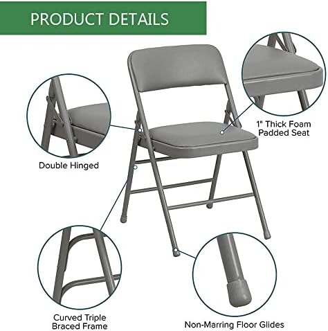 Space-Saving Elegance: Our 2-pack folding chairs blend a steel frame with fabric/vinyl seats, providing a stylish, space-saving solution for parties or gatherings. The foldable design ensures easy storage, making them ideal for any event.    Comfortable Seating: Featuring foam-padded seats, these folding chairs prioritize comfort without compromising durability. Perfect for extended use, whether you're hosting a party or setting up a temporary office space.    Versatile Indoor Solution: Beyond parties, these foldable chairs seamlessly transition into indoor spaces, offering a chic seating option for offices, conferences, or impromptu workstations. The sleek metal design adds a touch of sophistication to any setting.    Affordable Quality: The "Amazing for Less" pack strikes the perfect balance between affordability and quality. These cheap chairs redefine budget-friendly seating, ensuring you get sturdy, stylish, and comfortable folding chairs without breaking the bank.    Business-Ready Seating: Designed to meet the demands of professional environments, these folding chairs are perfect for boardrooms, conference halls, or impromptu office setups. Elevate your workspace with the sleek metal design, ensuring a touch of sophistication in every business setting.    No Assembly Required PRODUCT MEASUREMENT: Overall Size: 18.5""W x 19""D x 30""H Package Includes: 2 x Chairs
