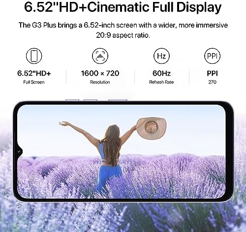 ANDROID 13 MOBILE PHONE : With the latest Android 13 operating system, The latest Android 13 has many improvements, adding new features, greater emphasis on privacy and security, more secure protection of your data, more diverse themes, enabling users to create personalized interfaces and provide more convenient services for each user.    5150MAH MEGA BATTERY:G3 Plus Unlocked phones offer extremely high performance in terms of battery life and charging efficiency. Equipped with an above-average 5150mAh battery, it gives you all the power you need to get through the day. Totally relieves the anxiety of running out of power and keeps the whole day fun    6.52IN LARGE SCREEN PHONE:The unlocked mobile phone adopts a 6.52in ultra HD screen ,6.52-inch screen is wider, 120Hz Touch Sampling Rate and the 20:9 aspect ratio and dual speaker design allow you to enjoy a cinema like viewing experience,Immerse yourself in all your favorite movies, TV shows, and video games. 720*1600 resolution, each picture presents a vivid natural color, bring incredible immersive    POWERFUL SYSTEM:G3 Plus is equipped with a Unisoc T606 octa-core processor, using an advanced 12nm process to achieve a balance between performance and power consumption. In detail, ,GPU with new generation arm G57 architecture, and supports eMMC 5.1 fast flash interface which brings faster file transfer.    LARGE STORAGE: Unlocked Cell Phone G3 Plus contains all the performance . 4GB of RAM and an octa-core processor ensure that your applications and content run smoothly, allowing you to manage multitasking without stalling, without lag, ensuring system stability and a pleasant mobile experience. The 128GB of built-in storage ensures you can take all your favorite movies, TV shows, games and photos with you. If you need more storage? Then you can use a microSD card to expand it to 1TB.    16MP HIGH PIXEL AND SECURE FAST UNLOCK: Equipped with 16MP high resolution rear camera and excellent AI algorithm image optimization, you can easily face a variety of shooting scenes, take sharp photos to make your works more vivid and clear,8MP front camera, perfect selfie camera, make your photos more striking. With side fingerprint and face unlock support, it's faster and easier to unlock the phone in the blink of an eye without compromising security.