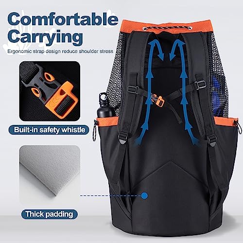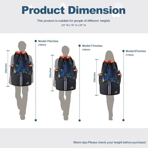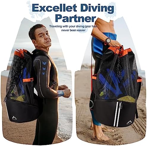 【Large Capacity & Keep Organized】- GoHimal scuba bag measured in 29”x16”x16”and equipped with multiple pockets to accommodate and organize all your scuba diving or snorkeling equipment like fins, goggles, mask, wetsuit, regulator, shoes, BCD, and more.    【Lightweight & Breathable Design】- Durable PVC coated mesh and bottom grommet allows to drain water easily and air dry quickly, ensuring that your gear stays dry and protected from potential damage caused by seawater and humidity.    【Delightful & Thoughtful Details】- Fluorescent strips making it easier for divers or their equipment to be spotted by others; adjustable chest and waist straps helps to relieve the stress of shoulder;built-in safety whistle in case of any emergency.    【Comfortable and Portable 】-This diving bag is designed in a backpack style, equipped with comfortable padded straps and back, allowing you to easily carry your gear during long-distance travels, providing a comfortable carrying experience.    【Durable and Long-lasting】- XL Scuba Diving Bag is constructed with high-quality materials, ensuring excellent durability and a long lifespan, capable of withstanding the demands of various diving and snorkeling activities.
