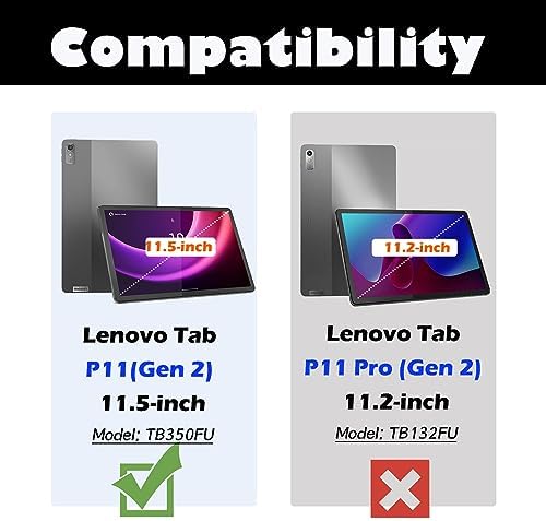 Fit -- Only for Lenovo Tab P11 Gen 2 11.5in (TB350FU) Auto Sleep/Wake -- Auto puts Lenovo tab to sleep when closed and turns it on again when opened, energy saving ShockProof -- Exterior front Synthetic Leather cover for anti-scratch,Interior Soft Microfiber for friendly screen protection, also Hard PC Back Shell with 4 corners buffer, protection from every details Adjustable Stand -- for Lenovo P11 case with adjustable folding stand, holds lenovo tab for an viewing angle at 60°or typing angle at 30°, free your hands Full Access -- Special case for lenovo tab p11 2nd gen, perfect cutouts for clear access to all buttons, ports, speakers and rear-camera