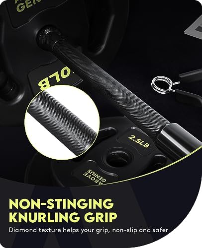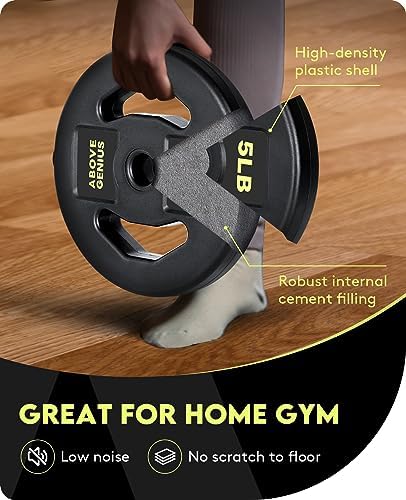 45 LB Barbell Weight Set Includes: Two 10 LB weight plates, two 5 LB weight plates, two 2.5 LB weight plates and a 10 LB, 51 inch long (1" diameter) bar and 2 spring collars. Adjustable weights set adds more versatility to your workout    Versatile: This weights set offer the ability to do any barbell-based workout, adjusting the weights as needed to train and shape your arms, legs, shoulders, back, whole body muscles and more. The versatile weight set provides a better workout than other sports equipment, allowing you to get the same exercise intensity as the gym at home.    Low Noise and No Scratch to Floor: Weights are solid cement filler encased in a high-strength plastic shell that won’t rust or scratch floors, use with confidence at home! Unlike ordinary barbell plates, this single plate offer ergonomic handle design make it can also be used for full range of muscle training and shape a good figure    High Quality Three-piece Bar: The diamond pattern knurling on the grip gives you a feeling of being glued, but not so strong that it tears your skin. Detachable barbell is easy to assemble, convenient use and space-saving storage, and allows you to use it anywhere, even at home or office.    Easy to Use: You only need take seconds to take out and assemble, the standard weight plates denominations are easy to calculate, save time in it, so you can focus more on your workout