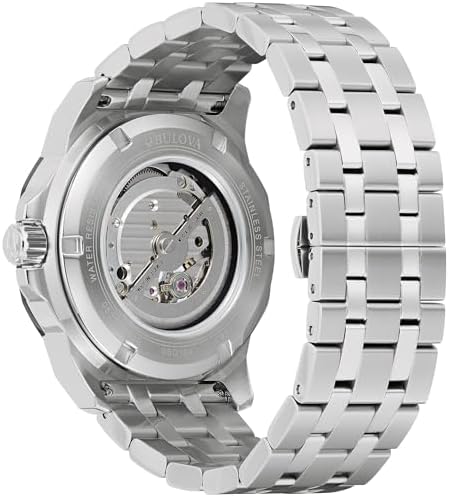Bulova Marc Anthony Men's Automatic Marine Star Stainless Steel Watch,Open Aperture,Exhibition Case Back,Diamond Accent Blue Sunray Dial, (Model:98D184)