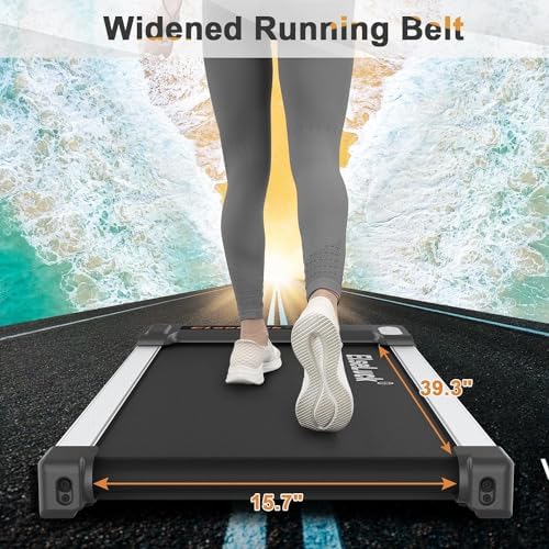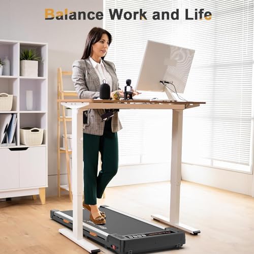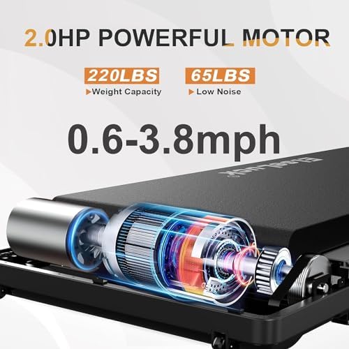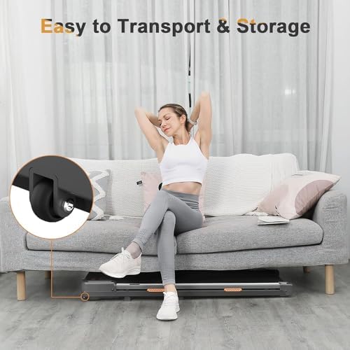 【2 in 1 Walking Pad】 Stay active throughout the day with our 2-in-1 portable treadmill. The speed of walking pad is 0.6MPH-3.8MPH Ideal for working while walking or jogging, this under desk walking pad lets you maintain your fitness routine!    【LED Display&Remote Control】 With LED display screen of Walking Pad, you can keep track of your speed, distance, time, and calories directly. Additionally, the included remote control allows you to adjust speed and start/stop the walking pad without interrupting your exercise.    【Quiet&Anti-slip Design】 Our under desk treadmill features 2.0HP motor which can support weight capacity of 220lbs. The walking belt is composed of 5 non-slip layers and equipped with shock absorption to minimize noise and reduce impact on the knee, muscles, and ankle. It allows you to exercise at home or office without disturbing your surroundings.    【Space Save&Easy to move】 This under desk walking pad treadmill has a compact design. The body size is 48*20.5*4.6 inches and the weight is 54 pounds which can be easily placed under the sofa, bad and desk. With built-in wheel design, it can be easily lift and moved.    【Customer First】 Enjoy peace of mind with our warranty. If you meet any problem while using our products, please contact with us. Our 24-hour customer service team will help you with any issue.