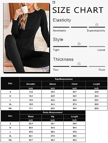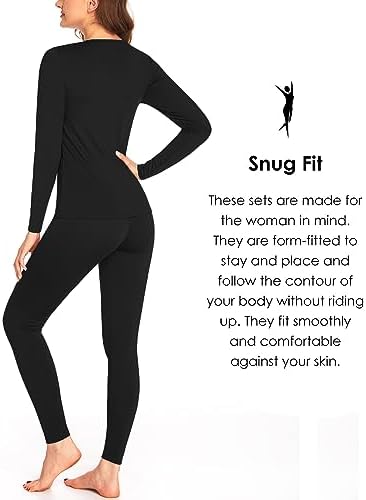 Ultra Soft Thermal Underwear - Features with smooth outer layer and micro fleece-lined inner layer that provides a warm and comfortable. Women thermal sets can keep you warm from top to bottom. They promote thermal insulation by trapping your body heat and keep you consistently warm, no matter if you are indoors or outdoors. Lightweight Fleece Lined 2 Piece Set - High quality micro fleece lined, moisture-wicking and breathable. Ladies long johns keep your skin snug, warm, and dry all day, making them an ideal choice to wear for going out as a base layer, also great to wear as warm pajama set at home. Cozy & Stretch Thermal Underwear Sets - This thermal base layer provides 4-way stretch and elastic waistband, firm sewing allowing you move without restrictions. Fit snug with great stretch, the feminine cut of this ladies long underwear will bring out the best in every part of your body. Stylish Versatile Thermal Clothing - This long johns thermal set is basic and simple that can match with any fashion items, easy to pair with jacket, suitable for skiing, hiking, camping, snowboarding or daily wearing. It's a essential item for every women or girls' wardrobe, also the perfect Christmas, Birthday or Mother's Day gift for your mom, wife, daughter, or friend. Warm Tips - Please pay attention to the SIZE INFORMATION on the product page and the SIZE CHART of SELLER in product images as well as our customers' feedback to ensure accurate fitting.         #405,787 in Clothing, Shoes & Jewelry ( )   #84 in