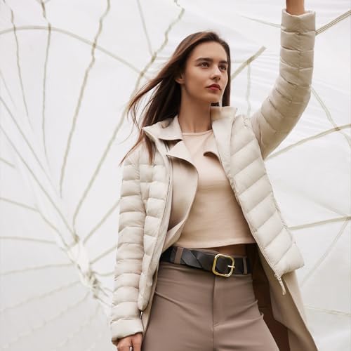 [Keeping Warm]The size is one size smaller.If your size is in between, we recommend you go for a larger size.BOSIDENG women's down jacket with interior down insulation to block out cold temperatures and add warmth;The down coat features full-zip,stand collar and warm cuffs, blocking out the wind and providing a comfortable fit. Let you don’t fear outdoor temperature changes. [Lightweight Down Jacket] BOSIDENG women's lightweight down jacket features water-resistant fabric, It is suitable for spring, fall and winter. Wear it with a t-shirt for brisk fall days or layer with a sweater or other outwear for the colder winter. [Humanized Design] Women's puffer jacket includes 2 outside zipper pockets and 1 inside button pocket.It is great for storing money, keys, phone, wallet, ID card etc,providing convenience for your property safety. [Multi-Colored & Packable] BOSIDENG teamed up with COLORO to develop popular colors and provide more color options for dressing in cold seasons.This puffy down jacket can be packed into carrying bag with a drawstring closure and easy to travel. [Multi-Purpose]The jacket provides long warmth without any bulkiness,It is suitable for casual wear,traveling,cycling, hiking,outdoors camping.etc. A must for women wardrobe in spring, autumn and winter, it is a very great Christmas, Thanksgiving gift too! #124,925 in Clothing, Shoes & Jewelry ( ) #26 in