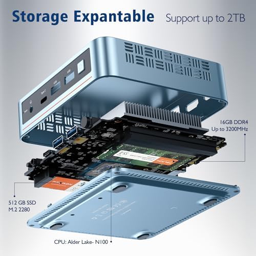 【New 12th Intel N100 Processor】Equipped with the powerful 12th N100 Processor (4C/4T, 6MB Cache, Up to 3.4GHz), released in 2023. It boasts a wide range of external interfaces, including USB3.02, USB2.02, USB-C1, and 3.5mm headphone jack1, making this mini PC an excellent option for your daily work, lightweight design, design work, online education, and more. 【16GB RAM and 512GB SSD】 - This PELADN WI-6 N100 mini PC comes with a pre-installed single-channel 16GB DDR4 RAM (Max 3200MHz) and a 512GB 2280 M.2 SSD. The RAM can be upgraded to a maximum of 32GB, and the storage can be expanded up to 2TB. 【All-in-one Small PC】This mini desktop computer measures only 4.9×4.4×1.4 inches, making it easily portable. It also features a built-in smart cooling fan, ensuring a noise-free experience. With Gigabit Ethernet support, dual-band WiFi (2.4G+5.0G), and Bluetooth 4.2, this machine offers versatile connectivity options. 【Dual 4K UHD Resolution】With the Dual HDMI Ports, you can simultaneously display videos at a resolution of 4096 x 2160@60Hz on two screens. Hang this mini PC on the wall and create your own home theater. 【After-sales Service】 Please feel free to contact us via Amazon message if you have any questions about the product. We will respond within 24 hours. Your support is our motivation to improve our products. This product comes with a one-year warranty.