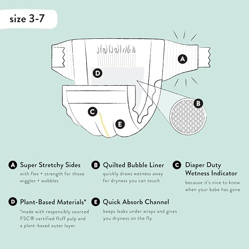 Clean Conscious Diapers are designed with safe plant-based materials + sustainable fluff pulp that’s responsibly sourced from North America to reduce transportation carbon footprint; Featuring advanced leak protection, cloud-like comfort fit for less sag + more swag, and stylish prints; Made with a plant-based backsheet, hypoallergenic inner lining, and now OEKO-TEX STANDARD 100 certified; Designed with unique features for every age + stage    Stretchy Sides with flex plus strength for those wiggles and wobbles    Quick Absorb Channel keeps leaks under wraps for dryness on the fly; Quilted Bubble Liner quickly draws wetness away for dryness you can touch    Diaper Duty Wetness Indicator because it’s nice to know when your babe has gone    Made without: Latex, Fragrance, + Parabens; Cruelty Free + never tested on animals           #5,345 in Baby ( )   #84 in   #2,430 in