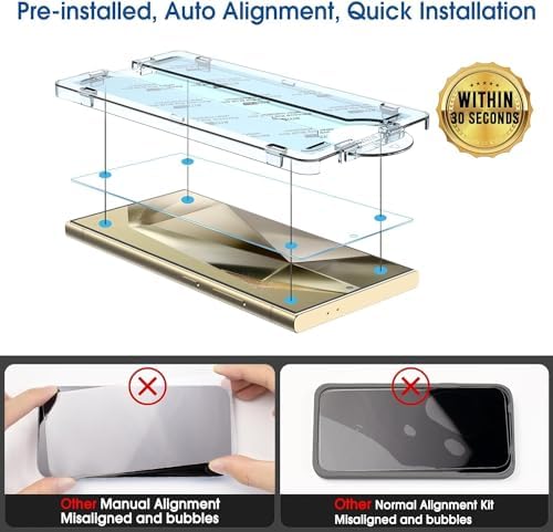 ?【Ultra-Fast Installation, Auto-Alignment in 30 seconds!】 Installing a screen protector might seem like a headache, but our OneTouch Samsung Galaxy s24 ultra screen protector is equipped with an automatic alignment kit for a fast installation in just 30 seconds! Say goodbye to the hassle of manual alignment.    ?【Indestructible Ultra 9H Glass for Ultimate Protection】Our Samsung Galaxy S24 ultra tempered glass screen protector leads the market with Ultra-high 9H hardness for maximum resistance against impacts and scratches from objects. No matter you’re daily routine, your phone is safely protected. Give your device that extra layer of sturdy protection it deserves!    ?【Anti-Fingerprint Resistance for a Cleaner Screen】Annoyed by fingerprints? Our Samsung Galaxy S24 Ultra screen protector comes with a transparent layer that is hydrophobic and oil repellent. After testing, they effectively prevented 99.99% of fingerprints caused by sweat and oil stains.    ?【Ultra-Clear and Ultra-Sensitive】Our Samsung Galaxy S24 Ultra screen protector uses high-quality materials and advanced coating technology to provide a clear, visual experience, ensuring smooth screen touching and sensitive response. Whether swiping, tapping or gaming, you can enjoy a seamless experience without delay or lag.    ?【Screen Protector Compatible with Samsung Galaxy S24 Ultra 6.8"】 Specially designed ONLY for Samsung Galaxy S24 Ultra 6.8". Not compatible with any other Phone models.