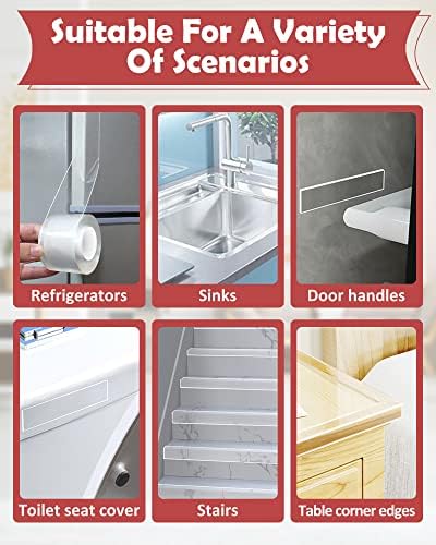 ?【Super Adhesion and Safety】This excellent edge protector is made of innovative eco-friendly nanomaterial, which is non-toxic, non-slip, extra sticky, soft, and highly elastic, not easy to deform, and safe for humans. Our edge protectors are the perfect gift for your baby.    ?【Soft and Transparent】The child safety edge protectoris size 0.8in x 6.6ft, 0.08in thick. Our baby edge protectors are completely transparent to maintain the original appearance of the furniture while providing safety and protection for your baby and child. With a protective edge layer that will not tear easily.    ?【Lasts Long Time】The material of our table edge protector has been improved to adhere better and last longer on the furniture, and does not peel off easily. At the same time, it is easy to remove and does not damage the furniture. NOTE: Cement walls, white plaster walls, and other uneven surfaces should not be used.    ?【Easy to Install and Remove】With the pre-installed adhesive strips, everything is easier and faster. Cut it to the size you want, place it on a clean surface, stick it on, and smooth it with your hands. Heat it with a hair dryer before removing it and tear it off slowly to prevent furniture from tearing.    ?【Suitable for Many Scenarios】Edge protector can be applied to home security guards, refrigerators, sinks, stairs, fireplaces, tables, furniture, beds, kitchen units, bedrooms, TV cabinets, stoves, and more, great for many kinds of furniture with different shapes at home or school, day care centers.