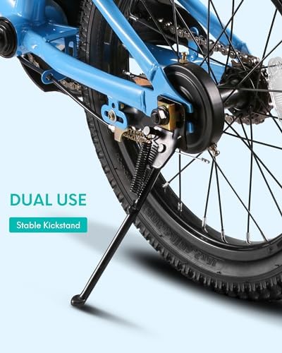 【Design for Kids 】1. This 16 inches kids bike comes with stable training wheel early. 2.Quick release seat simplify the height adjustment. 3.Saddle with holder to learn riding when the training wheel is off. 4.Foot brake suitable for young rider don't have enough power to manipulate the hand brake.    【Safe for Kids】Our kids bike bell around the handle and reflectors in many places, making it easy to drive during the day and at night. Detachable training wheels allow your child to ride a bicycle smoothly from beginner to being able to ride. Fully-enclosed Chain, effectively prevent clothing and other things involved in the chain resulting in child injury.    【Minimum Maintenance 】Made of premium steel to survive the bumps of learning, the durable steel frame is backed by our limited lifetime warranty. The kids bike comes with black tire & single speed, only little maintenance needed due to the simple design.    【Easy to Install】The 16" kids bike comes with 85% Pre-assembled body and the basic assembly tools, only pump needed for tire, normally takes a novice about 20 minutes to assemble the bike. If you have problem about assembly the bike, please contact us.    【Ideal Gift Choice】The kids bike with training wheels is perfect for beginner riders 41"-46" tall. Helping boys and girls age 4 to 10 years old learn to ride with confidence and fun.