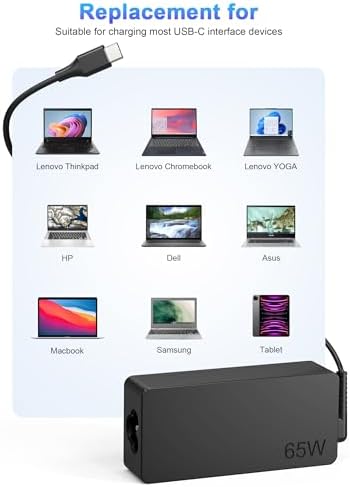 ?【65W USB-C Charger parameter】Input: 100-240V,50-60HZ,Output Max:65W 20V-3.25/18V-3A/15V-3A/12V-3A/9V-3A/5V-3A,(compatible with 45W ),With the latest USB-C and PD 3.0 technologies, the correct power output is automatically detected and delivered.    ✅ 【WHY CHOOSE BUY US】XOUBZ 65W (also compatible with 45W) USB charger can be quickly charged on all laptops with USB C power connector, including Lenovo, HP, Dell, Samsung, Asus, Acer, Google ; Meet the highest industry standards, built-in multiple protection mechanisms, the use of high-quality flame retardant and high temperature resistant materials, charging speed and safety are industry leaders, do not buy inferior chargers, to avoid damage to your laptop;    ?【 Lenovo Laptop Charger】Compatible with lenovo Thinkpad T480 T480S T470 T470s T490 T490S T495S T580 T580S T590 E480 E485 E490 E490S E495 E580 E585 E590 E595 L380 L390 L480 L490 L580 L590 A285 A485 A475 X270 X280 X380 X390 X395 X1 X12 X13;Lenovo chromebook 100e 300e 500e C330 C340 S330 C630 Yoga;Lenovo Yoga C930 C940 C740 S730 910-13IKB 920-13IKB C930-13IKB 720-15IKB.Lenovo IdeaPad Charger.    ✅【Dell Chromebook/Latitude Charger】Compatible With Dell Chromebook 3100 3500 3400 3300 3380 5300 5400 5500 5320 5420 5520 5400 5500 5175 5285 5289 5290 7400 7410 7420 7200 7300 7400 7486 5190 2-in-1 P28T P29T P30T P86F P99G P100G P101G P110G P111G;Dell Latitude 11 12 13 14 15 17 Series,    ?【HP Chromebook Charger】Compatible With HP Chromebook X360 14-CA 14C-CA 14A-NA 14B-CA 11-AE 11A-NB 14-DA 15-DB /Google Chromebook 11 G1 G2:14a-na0010nr 11a-na0021nr 14a-na0020nr na0035nr na0060nr na0022od 14b-ca0010nr 14b-ca0013dx 11a-nb0013dx 14b-ca0015cl 14b-ca0023dx 14b-ca0025cl 14b-ca0036nr 14c-ca0000 14-ca0043cl 14-ca003cl ca0053dx ca051nr ca0065nr15-DE0000 15-DE0523DX 14-ca061dx;HP Spectre X2 X360;Elite X2,Pavilion X2,Pro 2 :HP Pro x2 612 G2 table;HP Chromebook x360 11 G1 EE;HP Pavilion X2 12-B 10-N10-P And More    ?【what you get】1 x 65W USB C Laptop Charger, 1 x 10FT Power Cord.30 days Free return and exchange,12 months Quality assurance. 1year, if it does not charging, XOUBZ for you free replacement