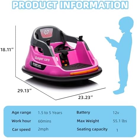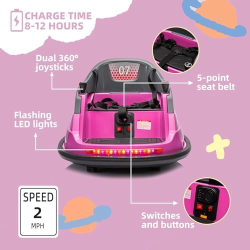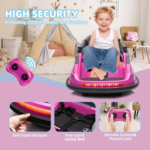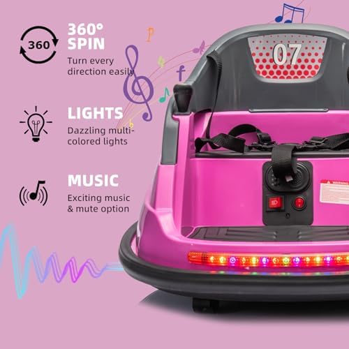 OKYBABY 12V Ride on Bumper Car for Kids, Baby Bumping Toy Gifts W/Remote Control, LED Lights, Bluetooth & 360 Degree Spin, Vehicle Body with Anti-Collision Padding Five-Point Safety Belt, Pink