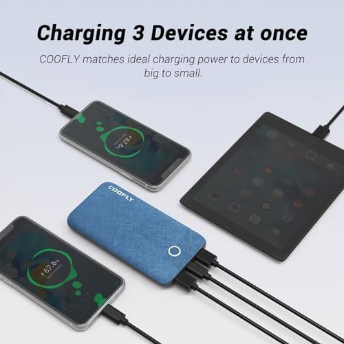 【Dual Output & Input】The battery pack charger portable has a USB-C IN&OUT port and 2 USB-A output ports.COOFLY P176D can charge all devices with your USB-C cables directly.3A fast charging fuels iPhone up to 78% in just one hour.Three ports allow simultaneous charging three devices.    【Ultra-thin and Portable】 At only 0.6 inches thick, COOFLY P176D portable charger,slim and compact design makes it the perfect portable power bank for travels, and easily fits into bags or backpacks, so you can stay powered for the journey.    【20W Fast Re-charging】COOFLY P176D portable charger power bank supports 20W PD high-speed USB C output, get iPhone 15 up to 50% charge in just about 30min.Back you up at last minute hurry.    【Reliable Li-polymer Cell】COOFLY P176D power bank features the Li-polymer battery pack, has 9 built-in safety protection. Intelligent power management IC provides power short circuit protection, over current protection, over voltage and over heat protection to ensure safe charging.    【What You Get】COOFLY P176D 10000mAh fast charge portable charger*1, user manual*1, warranty card*1, USB-C to USB-C cable*1,our worry-free 3-year warranty, and friendly customer service.