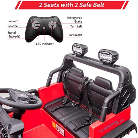 24V Kids Ride On Car with Remote Control, 2 Seats 20“ Extra Large Seat Wide Truck, 7Ah Battery Electric Vehicle, LED Brightlight, Front Storage, Bottle Holder, Horn, Music, USB (Red)
